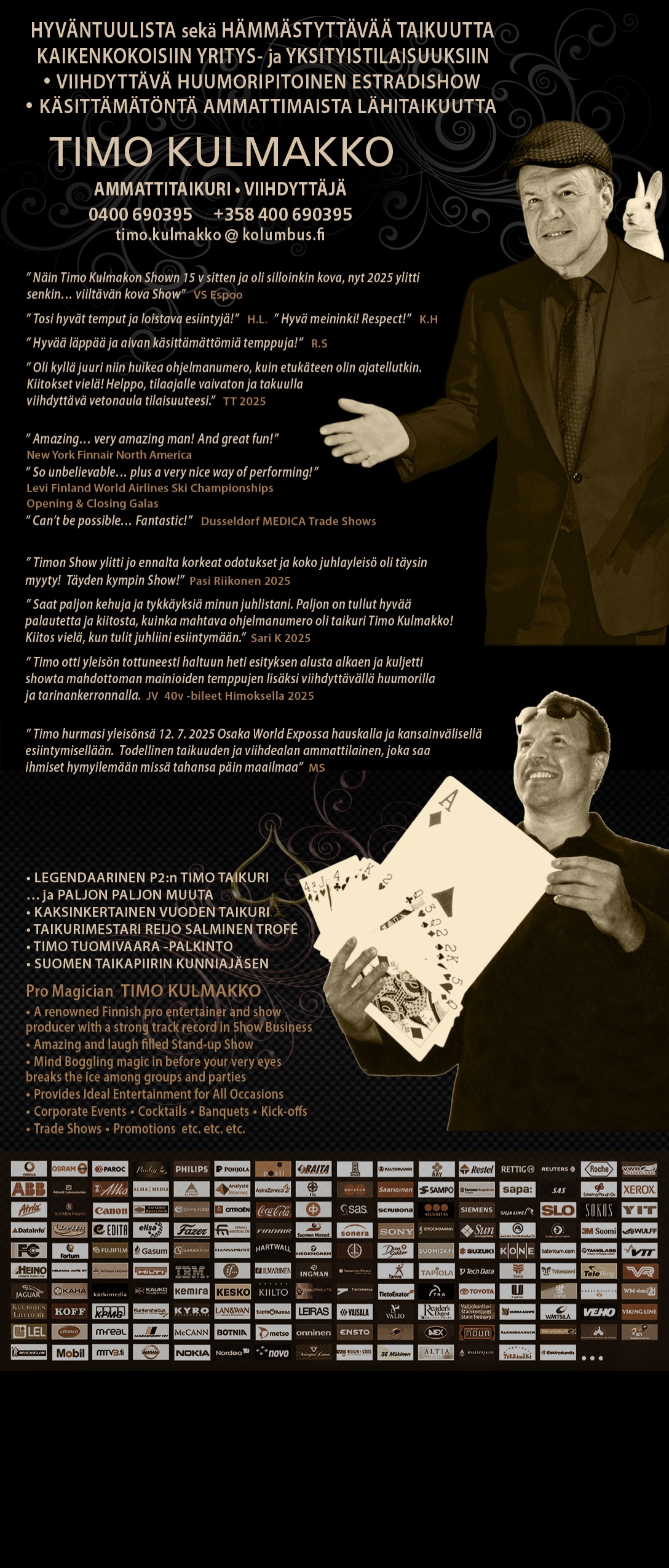 taikurimestari,taikapiiri, taikatemppu, magic, close-up, estradishow, show, taikuri, magican, pro magican, Timo Taikuri, vuoden taikuri, entertainer, entertainment, korttitemppu, ohjelmanumero, viihdyttäjä, superviihdyttäjä, esiintyjä, yksityistilaisuua, asiakastilaisuus, stand-up, tuotelanseeraus, oheisohjelma, ohjelma, Varietee Magica, corporate events, cocktails, banquets, brunssi, kick-offs, trade shows, promotions,